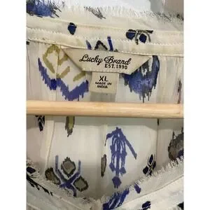 LUCKY BRAND aztec design cream color long sleeve blouse /top, size XL. Ikat print.