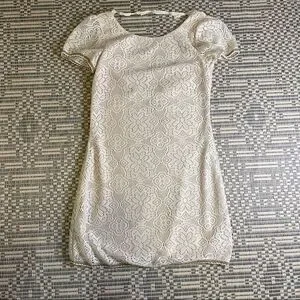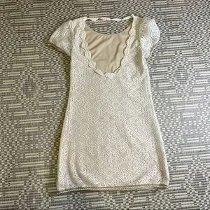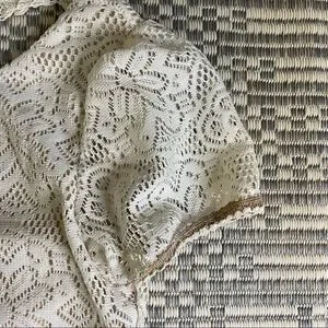 Open back detail. Crochet piece that crosses back does not lay flat. Would be super cute with a denim jacket or with cowboy boots!