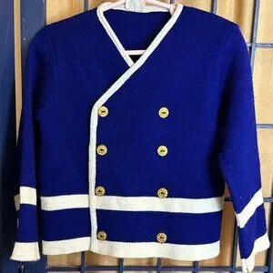 Vintage Little Angel Nautical Cardigan Navy Gold Button Sweater