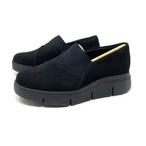 Clarks Loriini West Slip-On Wedge Shoes Wide Black Nubuck Comfort NIB