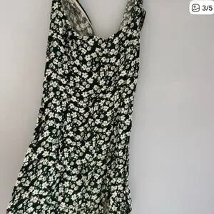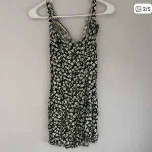 Reformation Forest Green Mini Dress with Cream Floral Print