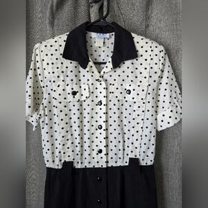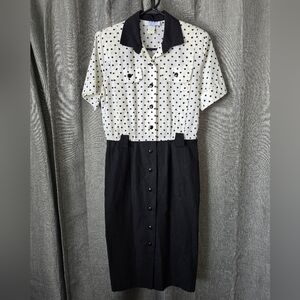 Peri Petites Vtg 80s Polka Dot Button Down Pencil Dress Size 8 Pinup Housewife