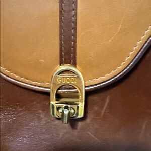 vintage Gucci handbag featuring a gold-toned knight crest pendant charm. Such a wonderful piece of fashion. This was my grandma’s purse. She took a lot of pride in it it does have imperfections, but still in great shape and great quality.