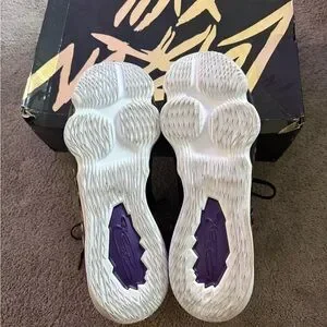 Stylish black basketball sneakers with purple and gold accents. Perfect for sports and casual wear. Worn once. Excellent condition. Great collectors item.