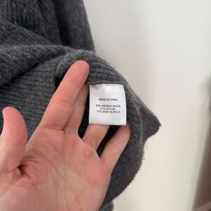 Quince women's Merino Wool Baby Alpaca Ribbed Mock Neck Sweater Charcoal Grey XL