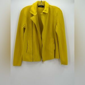 Turn heads with this vibrant mustard yellow jacket by Lauren Ralph Lauren, a chic statement piece that instantly elevates any outfit. Designed with a flattering tailored silhouette, this jacket features a stylish asymmetrical zipper closure, sleek vertical seams, and functional front pockets that combine elegance with everyday practicality.