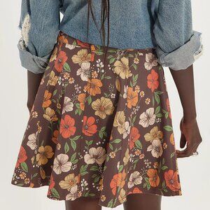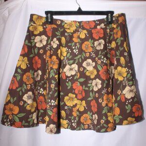 Multicolor, brown base with orange, white, yellow and green floral pattern print