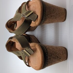 Clarks Sabina Sling Back Suede Cork Wedge Sandals Women's US Size 9.5. There are no flaws to call out. S001