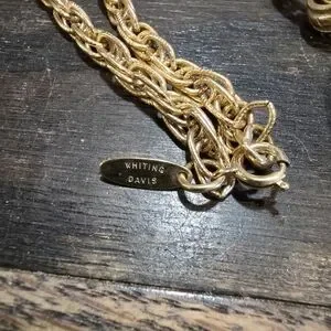Whiting & Davis Gold Necklace with Amber Pendant