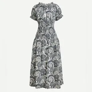 J. Crew Collection Smocked Cotton Poplin Dress Paisley Print Blue Size Small