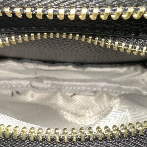 Compact pebbled leather pouch with smooth gold-tone zippers. Neutral interior lining. Sleek and versatile for everyday carry.