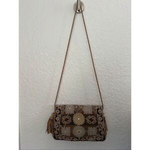 Anthropologie Khanna Embroidered Clutch / Crossbody Bag in Neutral