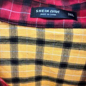 NWOT Shein Curve Mens Multicolored Plaid Long Sleeve Shirt Size 3XL XXXL