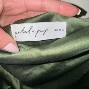 Chic satin maxi dress with tie straps. Perfect for evening elegance.