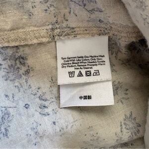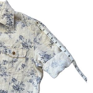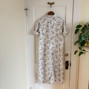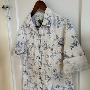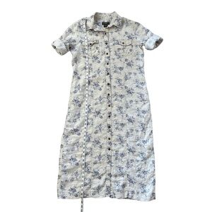 Eddie Bauer Prarie Linen Floral Shirt Dress Cream & Blue 3/4 Sleeve Large