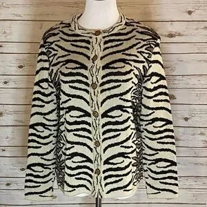 *SOLD* Vintage Philippe Marques cream/black zebra print cardigan sweater