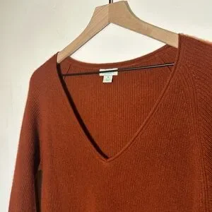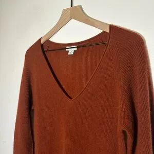 Elegant V-neck sweater in a deep rust hue. Ideal for layering.