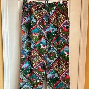 NWT PRINTFRESH Horses with Red Berries Cotton Long Pajama Set Size Medium