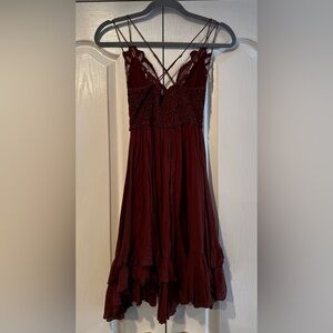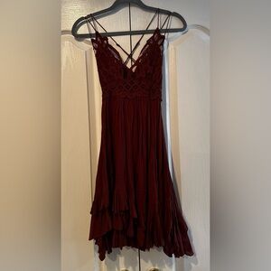 Free People Brown Adella Slip Dress - Size XS; excellent used condition; lace bodice; adjustable straps; ruffled bottom