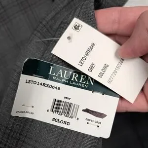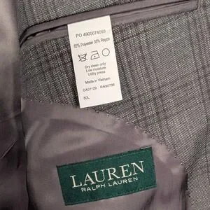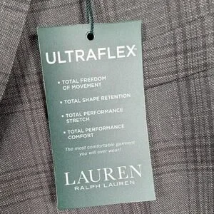 New Lauren Ralph Lauren Ultraflex suit jacket with original retail tags attached. Fabric, lining, buttons, and seams are clean, intact, and structurally sound with no wear, stains, holes, or damage. Paper hang tags may show light creasing from storage, but the jacket shows no signs of trying on, use, or alterations; listing includes the jacket only, matching suit pants are not included.