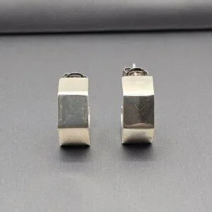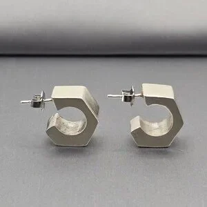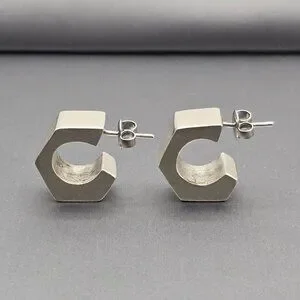 Make a architectural statement with these bold, modern C-hoop earrings. Crafted in polished sterling silver, their unique hexagon-inspired shape offers a contemporary geometric look that transitions perfectly from professional daywear to a chic evening out. Minimalist, edgy, and endlessly versatile.