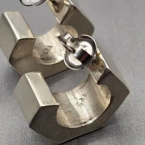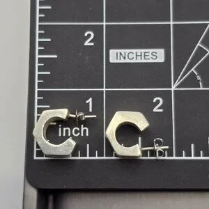 Sterling Silver Geometric C-Hoop Earrings Bold .75" Modern Hexagon Design