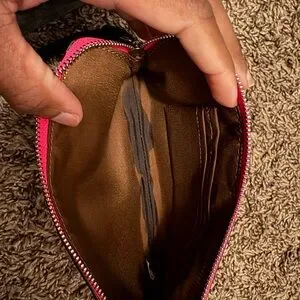 **signs of wear on bottom of bookbag and light stains in wallet please see photos ***