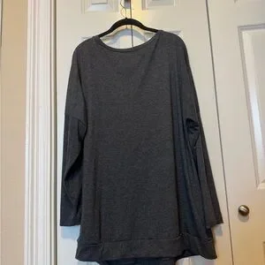 Grey Long Sleeve Tunic Top – Women’s XL – Side Button Detail