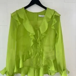 Ruffle Trim Sheer Blouse - Lime Green