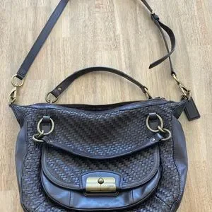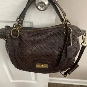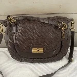 Coach Brown Woven Leather Kristin bag with Gold-tone Hardware
