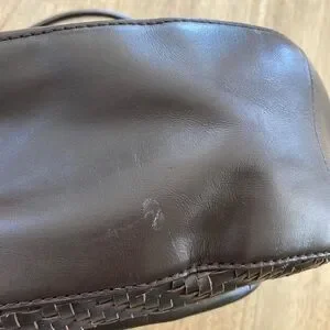Classic woven leather design. Single adjustable and removable crossbody strap. Gold-tone hardware and clasp. Front flap pocket for quick access. Removable leather tag detail. Make me an offer!