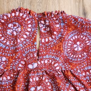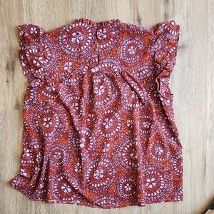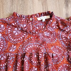Rose & Olive Rust Floral Ruffle Yoke Blouse