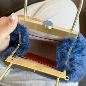 Cult Gaia Blue Textured Mini Bag with Gold Handle