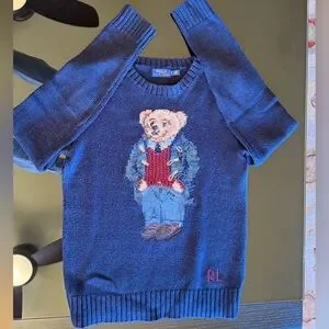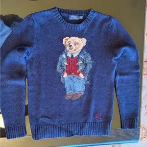 Signature bear intarsia at center front. Crewneck silhouette with ribbed collar, cuffs, and hem. Soft knit fabric for comfortable wear. Subtle RL embroidery near hem.