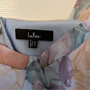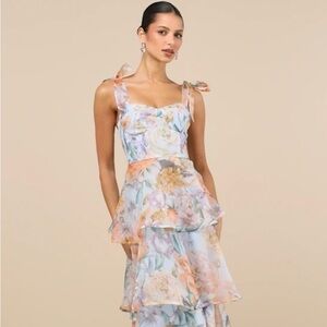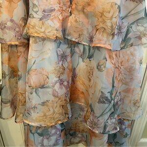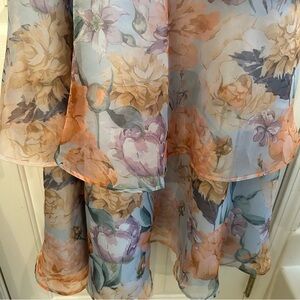 Playfully Posh Blue Floral Organza Tie-Strap Tiered Midi Dress Size XL