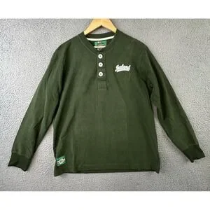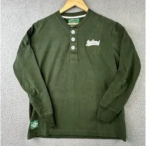 Retro Irish Heritage Collection 3-Button Henley Long Sleeve Shirt Mens L Green