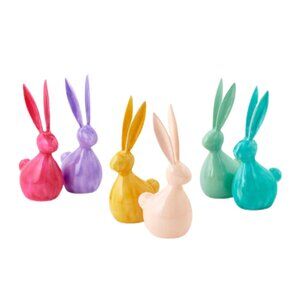 Crafted from durable metal with a smooth, high-gloss finish, this decorative rabbit creates visual height and impact while maintaining a clean, contemporary look.