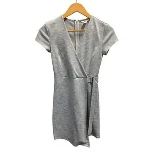 Bar III Womens Grey Heathered V-Neck Faux Wrap Buckle Mini Dress XS