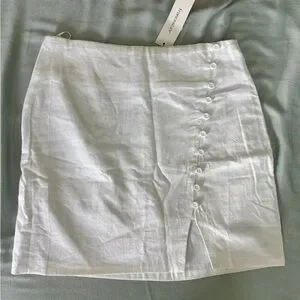 Chic white pencil skirt with stylish button accents. Ideal for versatile styling.