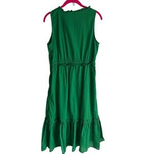 J. Crew Factory Kelly Green Tie-Front Sleeveless Tiered Ladies Midi Dress. Pockets. Lined.