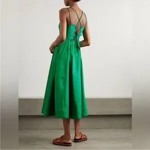 LA LIGNE Pleated organic cotton-blend poplin dress ✨One sold,last one available.