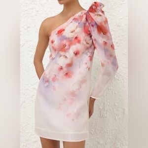 Zimmermann Crush Asymmetrical Mini Dress in Scarlett floral print Size 2.