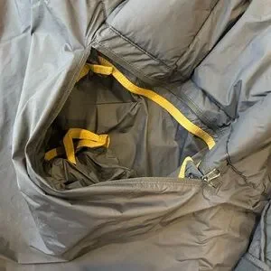 Good pre-owned condition. Smoke free. See last 2 photos for some light staining near the zipper. Have not tried to remove. Retail $248