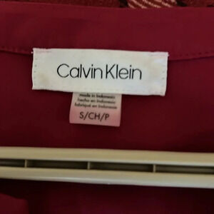 A stylish Calvin Klein sleeveless blouse in a rich burgundy color, accented with black trim. Perfect for both casual and formal occasions. Blouse is great condition sized small. Measurements: Chest Width: 46.9 cm | 18.5" Body Length: 62.7 cm | 24.7" Shoulder Width: 37.4 cm | 14.7" Bottom Hem Width: 38.8 cm | 15.3" Waist Width: 37.1 cm | 14.6"