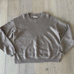 Soft crewneck sweater with delicate pointelle knit detail. Lightweight, breathable fabric for everyday comfort. Relaxed fit that layers easily. Taupe color adds versatile, neutral style.