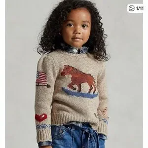 Polo Ralph Lauren Little Girls Rocking Horse Wool Blend Sweater