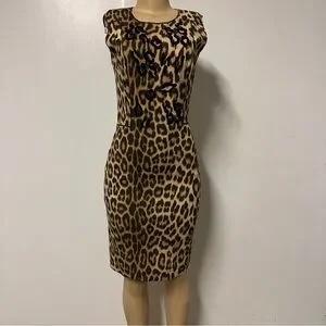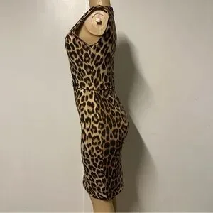 Blumarine Leopard Animal Print Midi Pencil Wool Dress Size Italy 42 US 6
