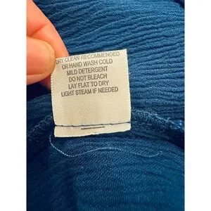 Dry clean recommended or hand wash cold with mild detergent. Lay flat to dry. Light steam if needed.