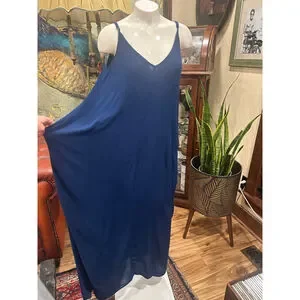 LOVESTITCH Navy Blue Gauze Maxi Dress Pockets S/M