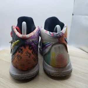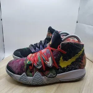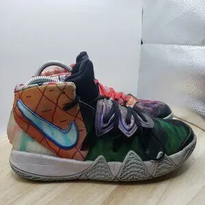 Dive into a vibrant world with the Nike Kyrie 5 Pineapple Women's Sneakers. Emblazoned with a playful Pineapple theme, these sneakers are a colorful tribute to the iconic SpongeBob SquarePants character. The multicolored fabric upper and round toe design offer a fun twist on a classic style, while the lace-up closure ensures a snug and secure fit. Built for comfort and performance, these sneakers feature a cushioning foam insole and fabric lining to keep your feet feeling great all day long. The durable rubber outsole provides excellent traction on various surfaces, making these shoes a versatile choice for everyday wear. With their standard shoe width and US size 6.5 (UK size 4.5, EU size 37.5), they're a perfect blend of fun and function for the fashion-forward, active woman.
